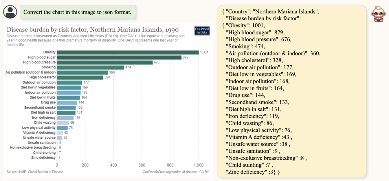TextMonkey能帮助我们结构化图表、表格以及文档数据,通过将图像内容转化为轻量级的数据交换格式,方便记录和提取。