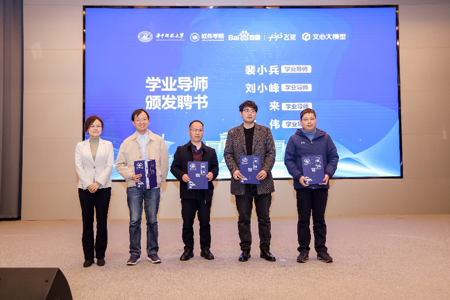 在飞桨班开班仪式上,许晓东和吴甜分别向飞桨班的产业导师和学业导师颁发了聘书,飞桨班学生代表、2022级本科生黄奕做了发言。随后,举行了飞桨班开班第一课,百度杰出架构师胡晓光和百度视觉技术部总监丁二锐分别做了“人工智能技术创新与科学计算探索”和“文心·CV大模型VIMER闭环:半监督与多模态视角”的技术报告。现场还举行了百度自动驾驶汽车Apollo自动驾驶汽车的展示活动。