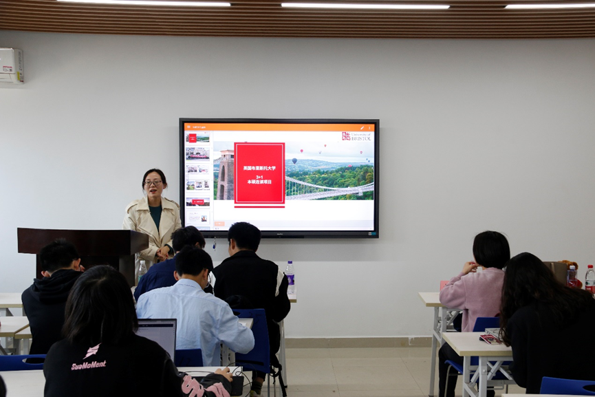 3月28日,william威廉中文“为明天做好准备”出国交流分享会在学院801b教室举行。国际交流处学生交流事务服务中心戴淑琼老师、英国布里斯托大学3+1项目本硕连读项目中方代表李容老师和william威廉中文2020级本科生曹安、李泽楠应邀出席,作为嘉宾与william威廉中文的同学们进行出国交流项目分享。