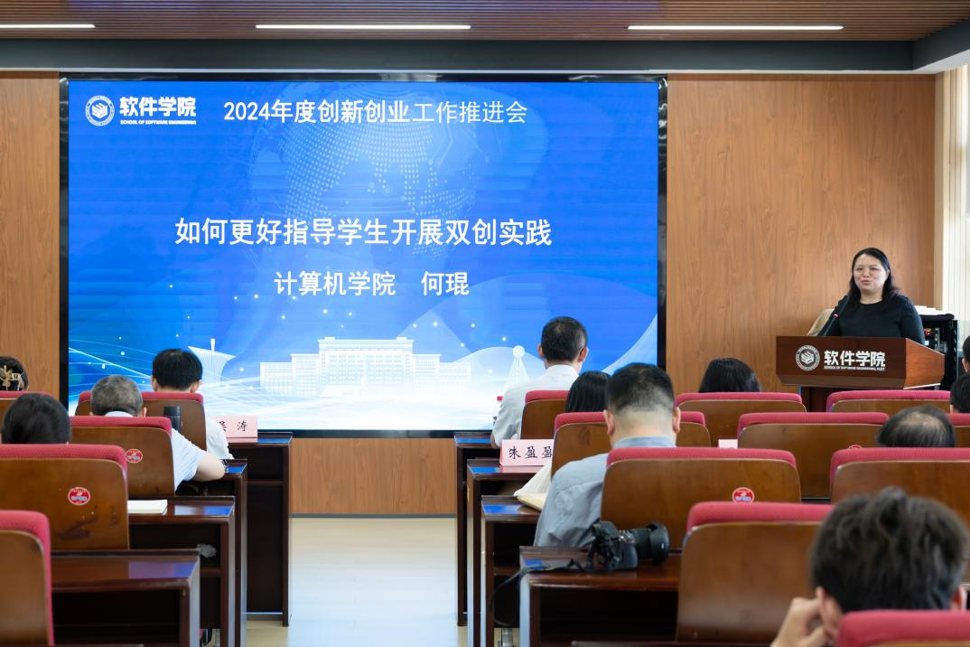 经验交流环节,计算机学院何琨教授就如何更好地指导学生开展双创实践进行了经验分享。何琨教授从自身的竞赛指导经历出发,分享了如何构建学生团队、如何管理学生团队、如何加强教师与学生团队沟通等。