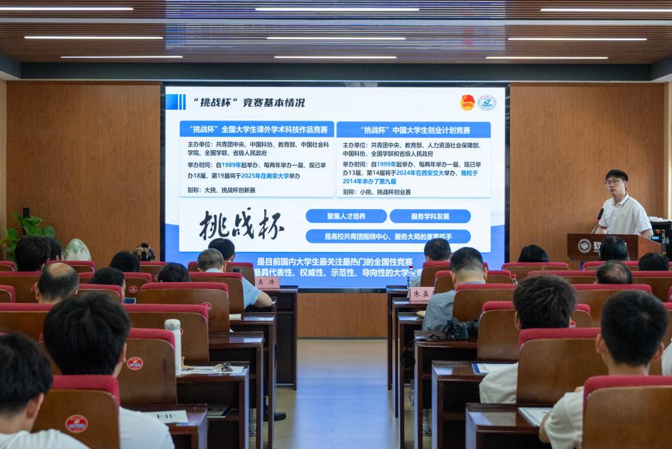 校团委兼职副部长卢孝巍老师对“揭榜挂帅”2024年度专项赛的政策、赛制和备赛时间线进行了详细的解读,并通过往年获奖实例进行了具体指导。