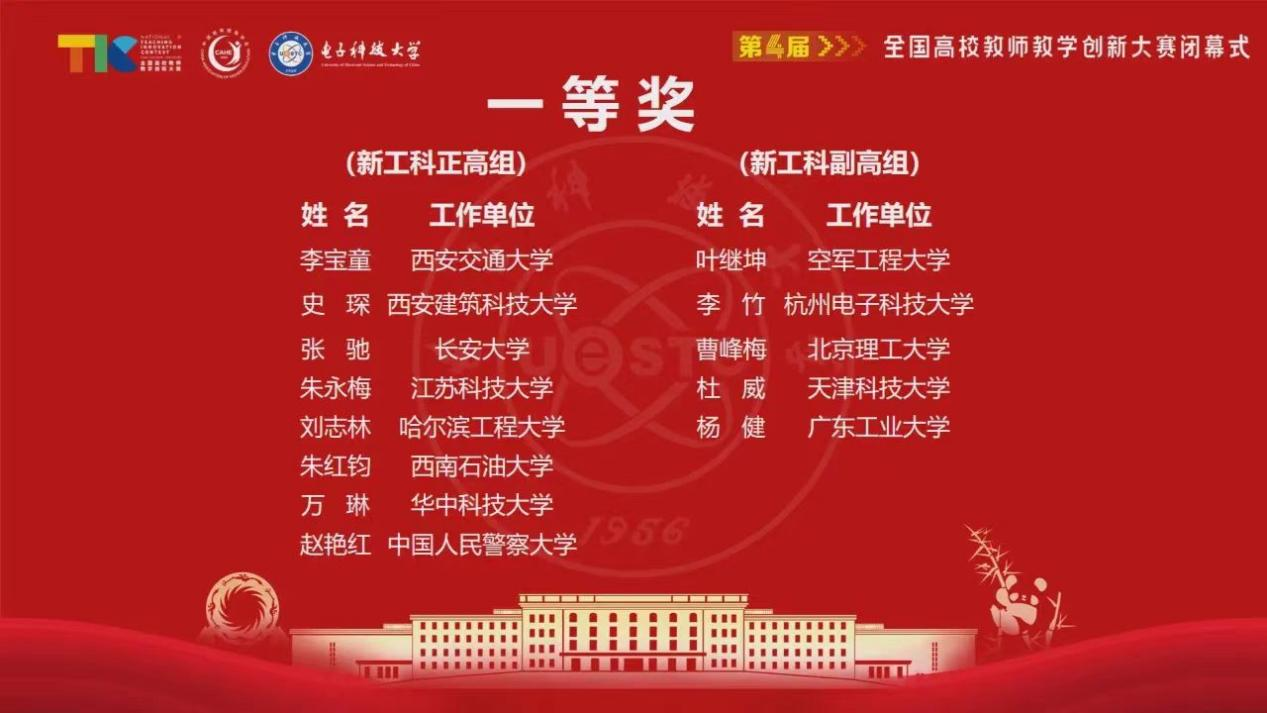 7月27—31日,第四届全国高校教师教学创新大赛在电子科技大学成功举办,我院万琳教授团队获新工科正高组全国一等奖!