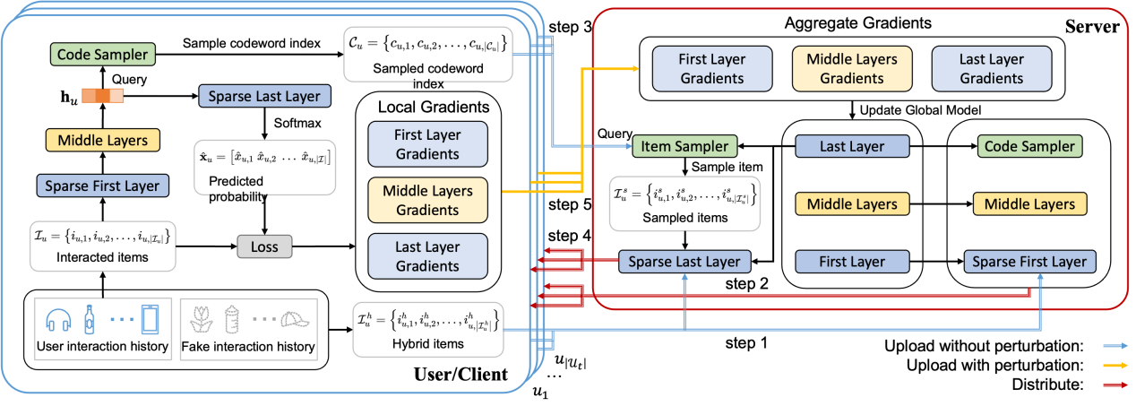 针对这一问题,论文提出了一种高效的联邦变分自编码器框架(EFVAE)。EFVAE引入了一种联邦协同重要性采样(FCIS)方法,显著减少了模型训练过程中的通信成本。该方法通过客户端与服务器之间的协同采样机制,动态地近似解码分布,从而在保持推荐性能的同时,大幅降低了通信成本。实验结果表明,EFVAE不仅有效降低了通信开销,还在推荐性能上表现出色,尤其是在稀疏数据场景下展现了明显的优势。此外,FCIS还能应用于其它基于自编码器的推荐系统,进一步显示了其在多种场景下的适用性和有效性。