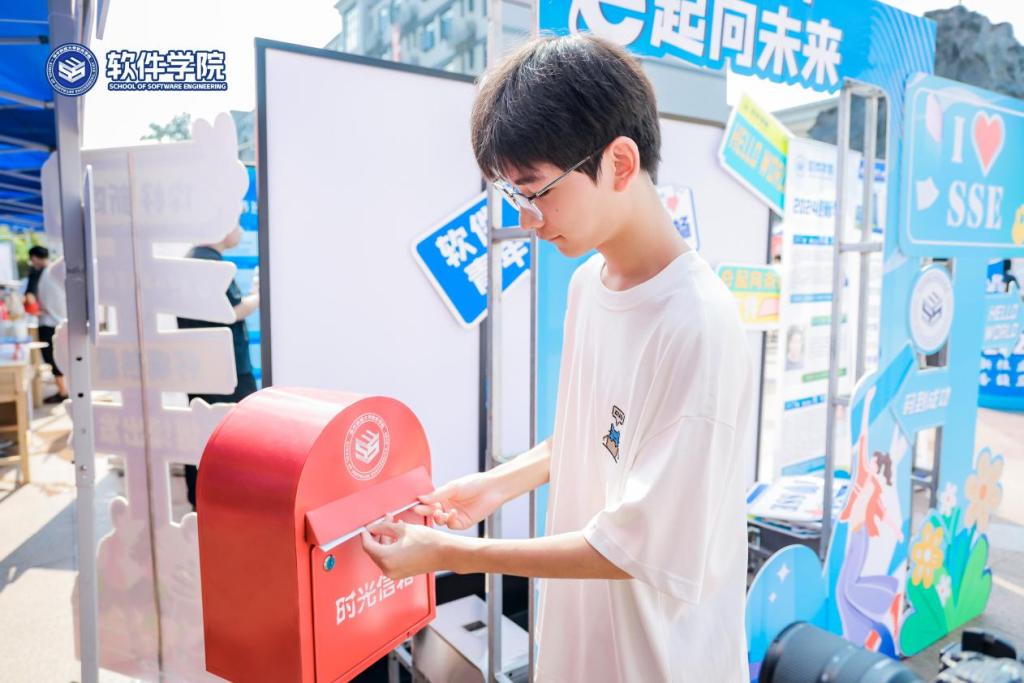 同时,辅导员田春雨老师在暑假给新生布置了一个小作业,写一封给未来自己的信,在报到时投递到时光信箱,学院为大家保存4年,毕业时再送给大家,感受这4年自己的变化。新生们积极参与其中。一封封信件的投递,代表着对未来的美好希望。