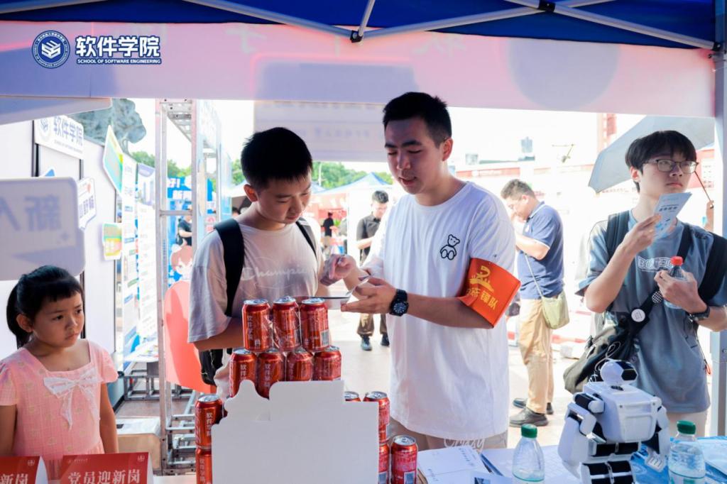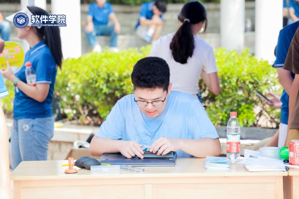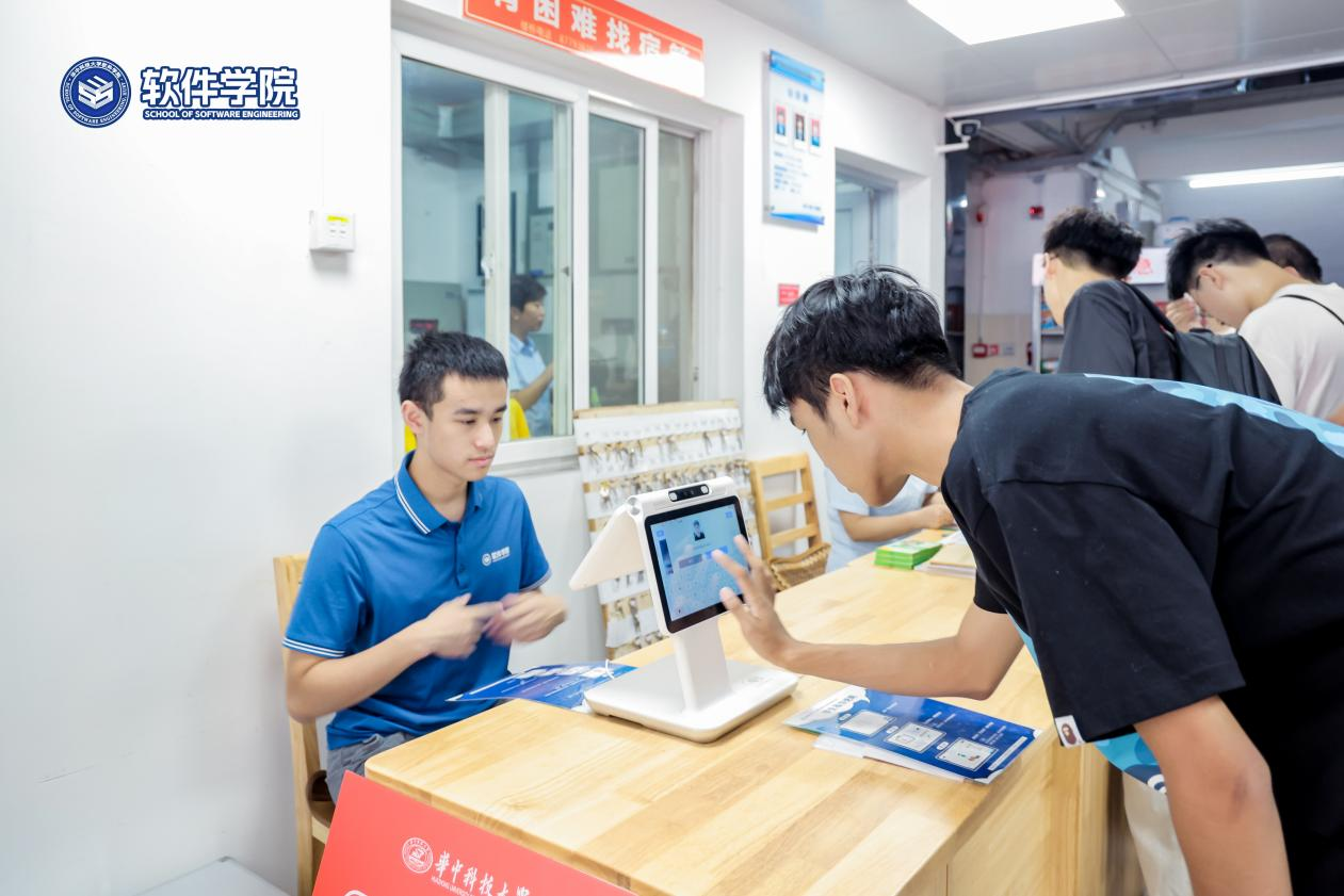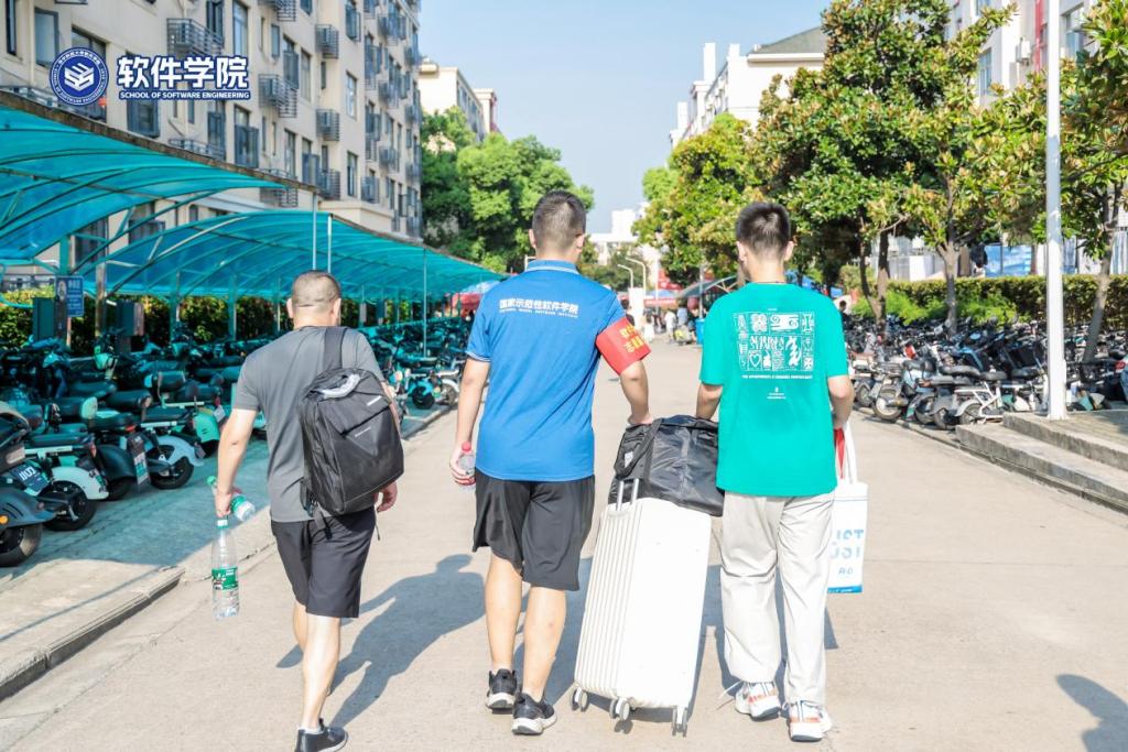 线下,身穿蓝院服、臂戴红袖章的身影活跃在各处,为新生们送去关怀。