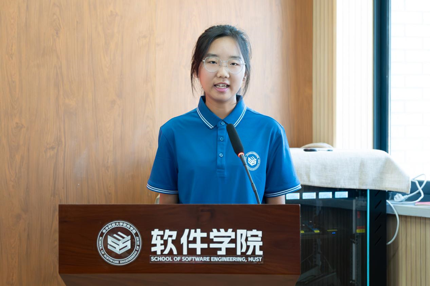 软件工程2402班章烈涵同学作为新生代表发言。章同学分享了自己圆梦华科大的激动之情,对william威廉中文师生对新生们的关怀表示感谢。她呼吁同学们向优秀校友学习,在华科大浓厚的学风中发扬“明德厚学,求是创新”的校训精神,成长自我,奉献社会。