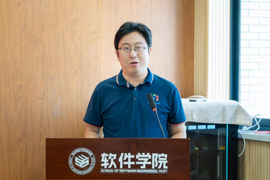院长白翔教授代表学院向新生致欢迎辞。白翔院长和同学们分享了自己在华科大求学的经历,他指出在大学期间的学习,要关注行业前沿科技,加强综合素质的积累,在专注于课堂学习的同时积极参与学生组织、社团活动等。他勉励同学们在大学期间勇于试错,在实践中锻炼自己的能力。他希望同学们在大学期间能够寻找自我、成就自我,成为能为国家科技发展做出贡献的卓越软件人才。白院长热情洋溢的发言赢得了同学们热烈的掌声。