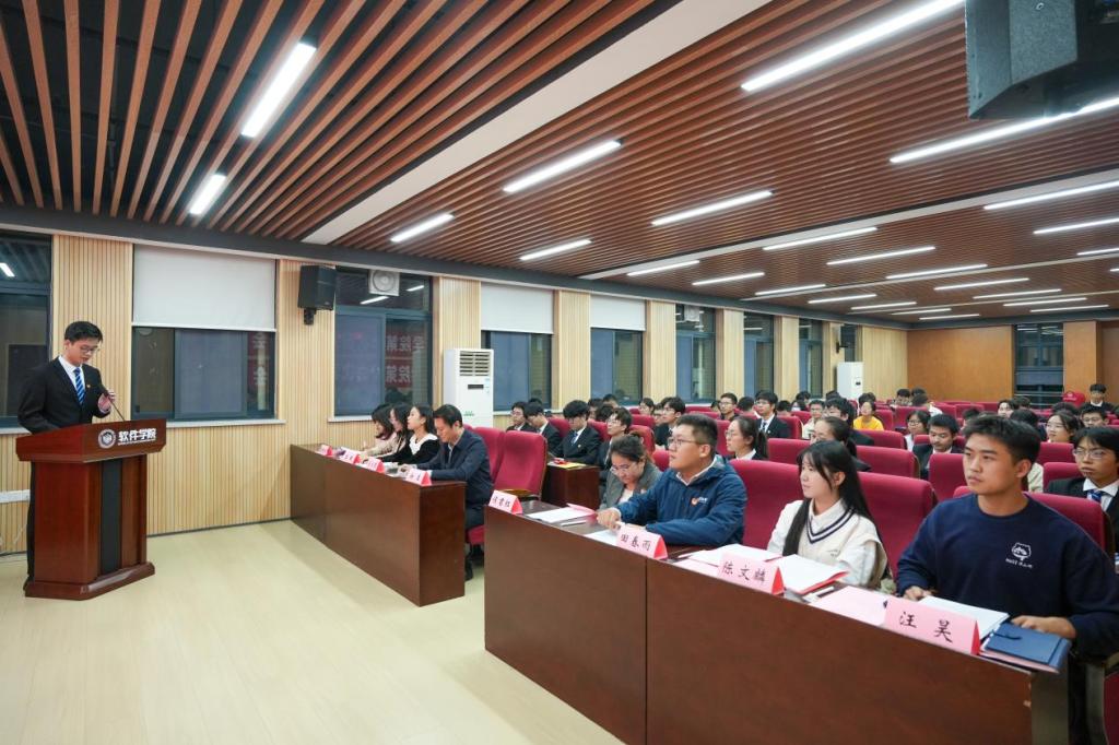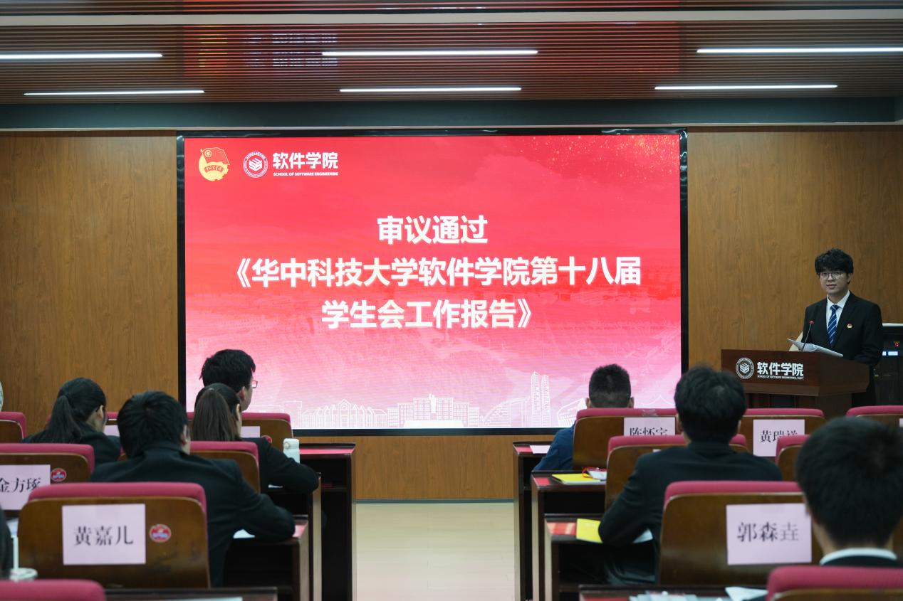 首先,学院第十八届学生会主席团成员黄瑞祥作学生会工作报告。