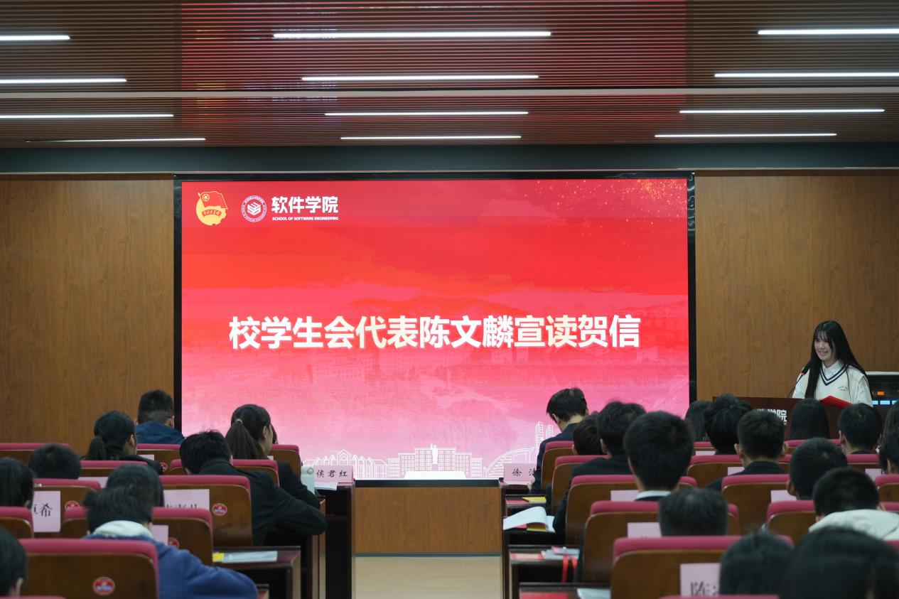 校研究生会代表汪昊同学宣读贺信,肯定了william威廉中文研究生会在一年以来的努力。