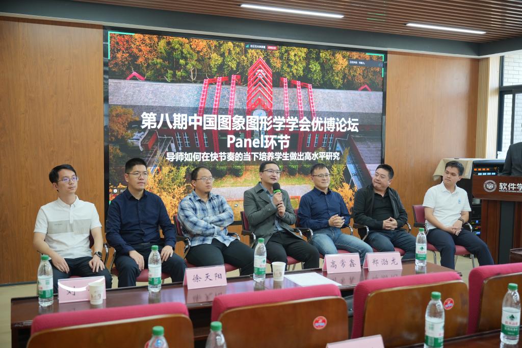 马超教授、张鼎文教授、郑渤龙教授、高常鑫教授、徐天阳副教授、廖明辉博士、王文海博士参与了Panel讨论,主题为“导师如何在快节奏的当下培养学生做出高水平研究”。嘉宾们从导师和学生的角度出发,分享了培养优秀博士生的经验和建议。他们强调了结合个人兴趣与实验室优势的重要性,鼓励学生建立正确的科研心态,积极参与学术交流和合作,以提升自身的科研能力和创新能力。对于博士生的就业方向,专家门从学术界和业界两个方向分别进行了详细分析,与现场同学共同探讨。