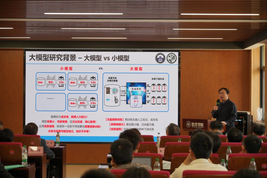 前四场报告均来自于不同领域的领军学者展开。首场报告为杜博教授的《大模型方法及其垂域应用研究》。杜博教授首先介绍了大模型在人工智能领域的应用背景和发展趋势。随后,他详细探讨了大模型在遥感等特定垂直领域的应用。报告中,杜博教授分享了其团队在这些领域的最新研究成果,包括模型结构、数据集构造和性能评估等。最后,他总结了大模型在垂域应用中的挑战和未来发展方向,探讨了大模型在特定领域的应用及研究进展。