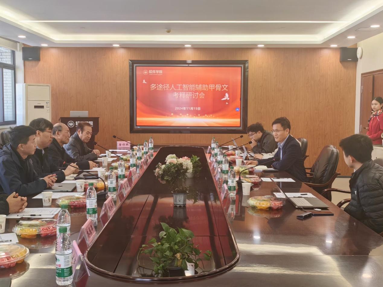 刘禹良教授介绍了团队利用人工智能辅助甲骨文考释的最新进展,提出通过形、音、意、理等维度破解甲骨文的路径,强调了AI技术在文本语义解析和字形辨识上的重要性,并与专家们探讨了跨领域合作的实际需求。
