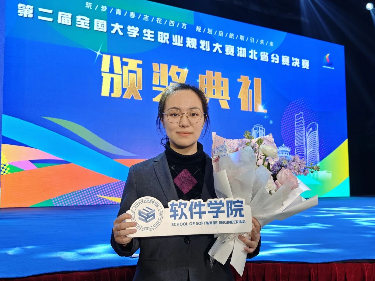 3月9日,由湖北省教育厅主办的第二届全国大学生职业规划大赛湖北省分赛决赛在湖北大学圆满落幕。本次大赛以“筑梦青春志在四方,规划启航职引未来”为主题,由湖北省教育厅主办,共有185位来自不同高校的优秀选手同场竞技。我院软件工程专业2202班学生余刘慧婷荣获高教组成长赛道金奖(排位第二),实现了我院在该项赛事零的突破!
