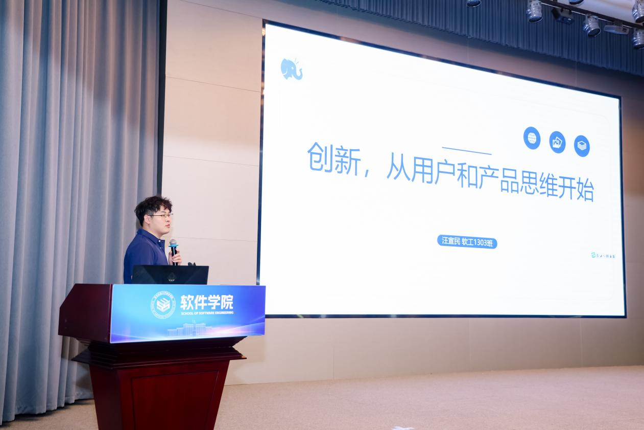 见微智助联合创始人、2013级本科校友汪宣民以《创业,从用户和产品思维出发》为题,分享了从校园学子到科技创业者的故事。