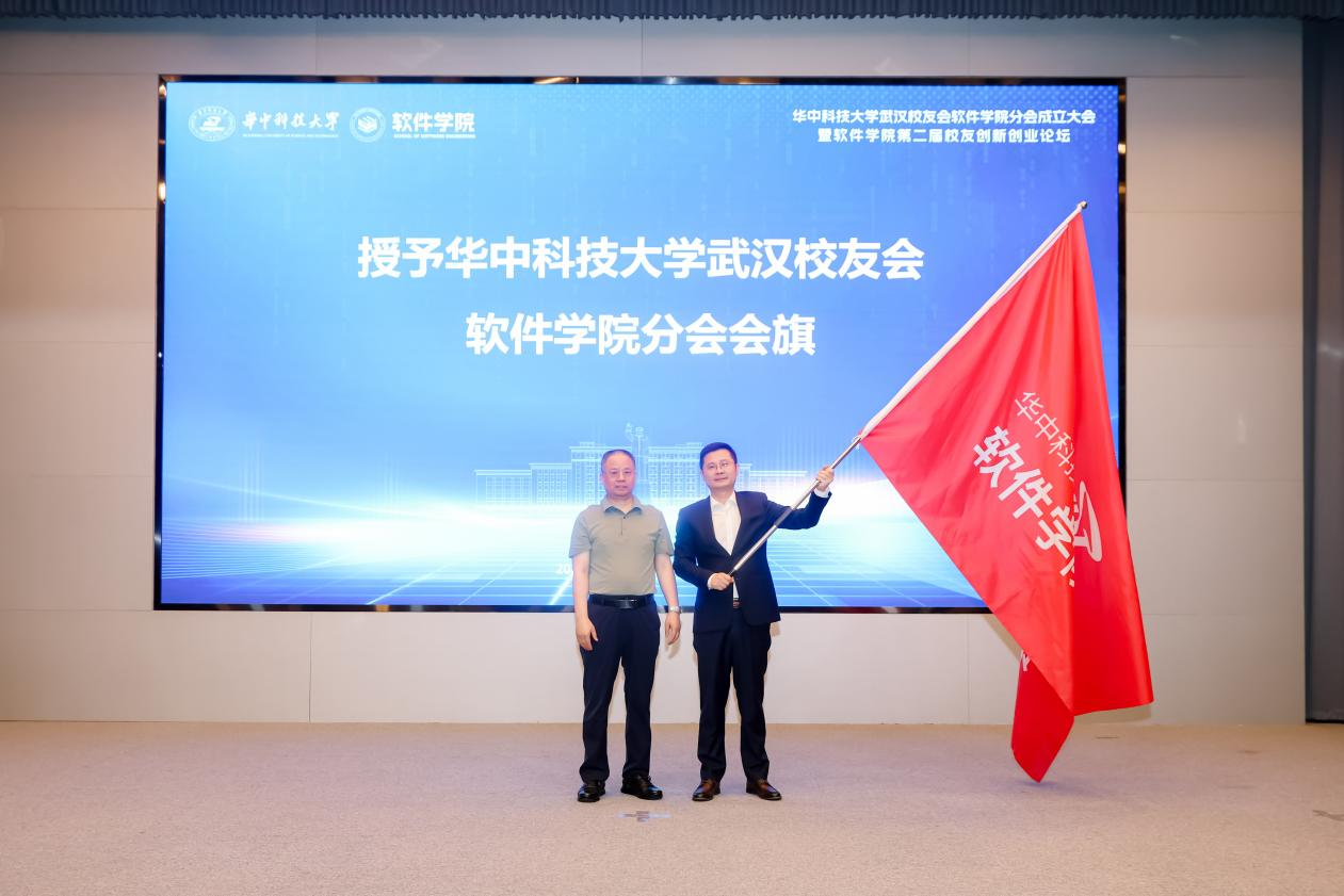 邬毛志向皮宇授予了WilliamHill中文武汉校友会william威廉中文分会会旗。