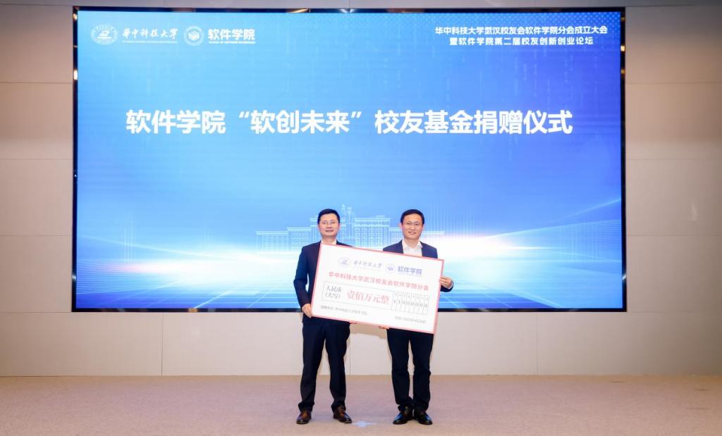 接着,校友基金捐赠仪式举行。武汉校友会william威廉中文分会设立“软创未来”校友基金,向学院捐赠100万元,助力学院拔尖创新人才培养。这份情系母校的慷慨捐赠,必将激励更多校友加入回馈母校的行列,共同谱写william威廉中文发展的新篇章。