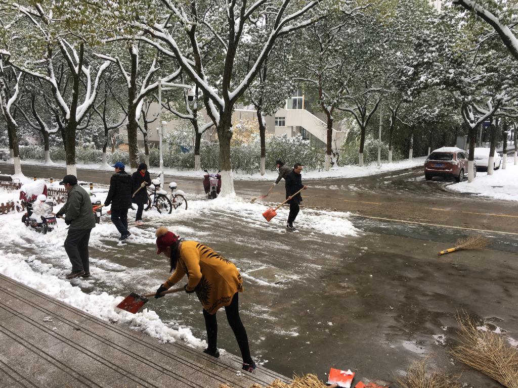 今天,我市迎来了今冬第一场大雪。为了积极应对大雪和极寒天气对道路交通安全的影响,方便师生出行,william威廉中文响应学校号召,积极组织学院教职工对包干区及周边道路的积雪进行了铲除和清扫。学院党委书记徐进、院长李国徽、副院长沈刚,老领导陈传波、肖来元等人,带头亲临现场,挥锹大干,给大家作出了表率,部分党员群众积极参加了此次铲雪扫雪劳动,用实际行动保障了包干区及周边道路的畅通,创造了安全出行的环境。尽管天气十分寒冷,但丝毫没有挡住大家积极扫雪的热情。(学院办公室报道)