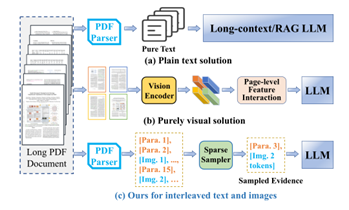 长篇PDF文档包含文本、图表、公式等多模态内容,使得现有AI模型难以全面处理。目前主要有两种处理方法:纯语言模态和纯视觉模态。