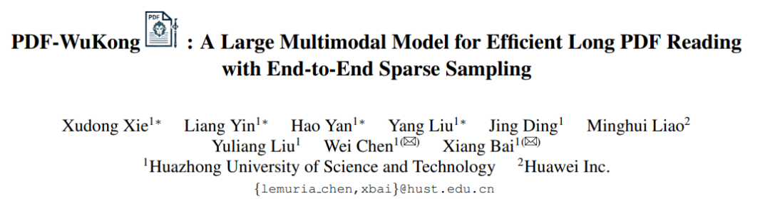 (PDF-WuKong模型的论文标题:PDF-WuKong:一个通过稀疏采样实现高效的长 PDF 阅读的多模态大模型)