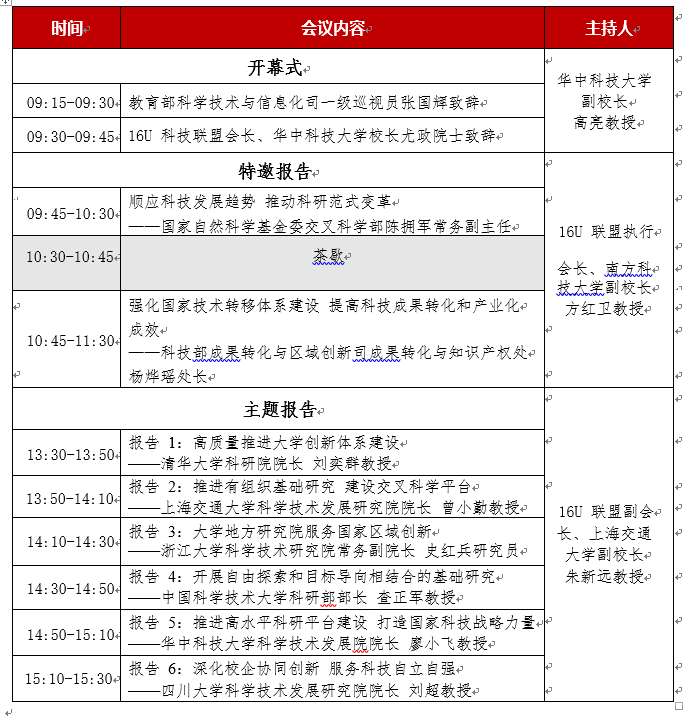 全国 16 所工科重点大学科技联盟WilliamHill中文年会会议议程