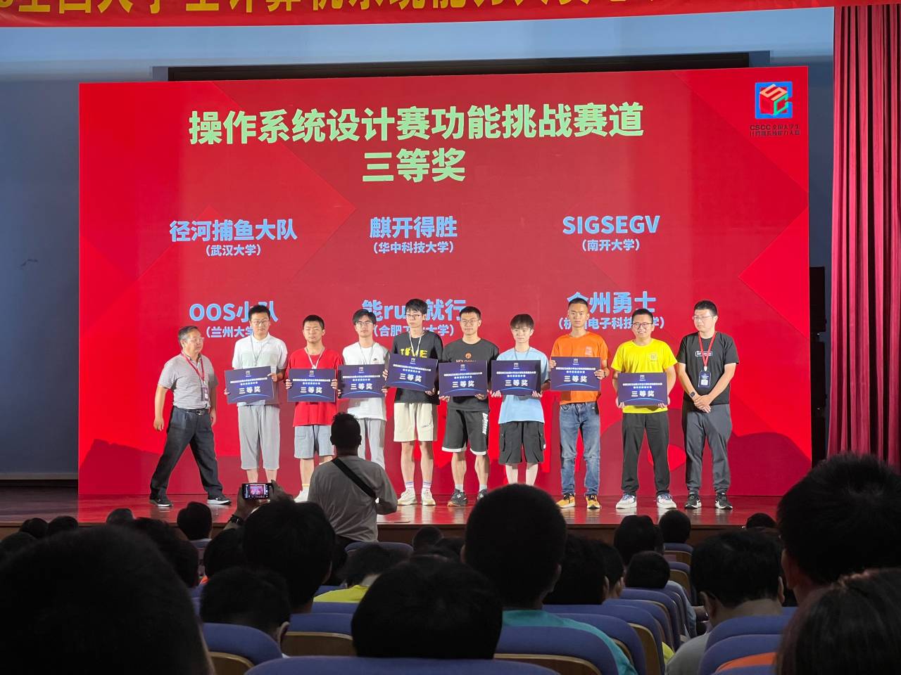 “2023年全国大学生计算机系统能力大赛操作系统设计赛”全国总决赛于8月18日至23日在中山大学(海珠校区)举行,我院“麒开得胜“团队在总决赛取得三等奖的佳绩,团队成员由黄俊霖、贾超博、林博珩三位同学组成,指导教师为苏曙光老师。