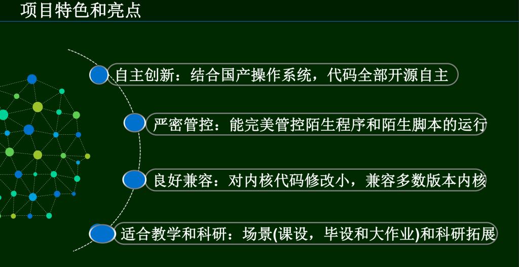 团队作品“Linux基于文件扩展属性的执行控制系统”选题来源于操作系统头部企业麒麟公司。赛题基本目标是控制Linux系统上未授权的程序或脚本(可能具有恶意)无法启动。学生团队先后克服了管道和软链接等监控难点,最终完美实现Linux系统中程序和脚本的启动控制和审核。经过PPT汇报、答辩质询和现场演示等环节的激烈竞争,“麒开得胜”团队最终斩获大赛三等奖。