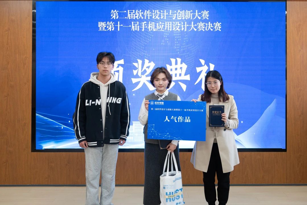 经过两个多小时的精彩角逐,本次大赛在A类产品组和B类创意组中分别评出一等奖一项、二等奖两项、三等奖三项、人气奖一项,由在场的各位评委老师等为获奖同学颁发证书与奖金并合影留念。
