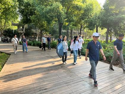 项目负责人曹华对活动精神进行了解读并分发了相关学习资料。会后全体教职工在学院大楼前合影,随后展开了全体教职工环湖踏青健步行活动,全体教职工在湖光山色的散步活动中进一步领会、学习党的二十大精神,畅谈学院二次创业的规划和美好前景。