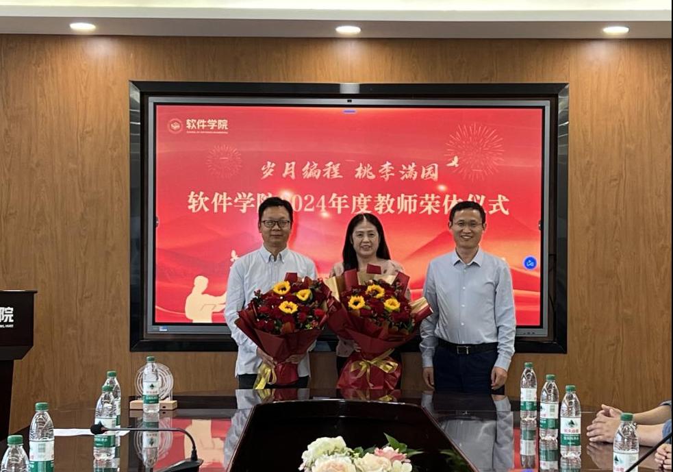 为表达学院的敬意和祝福,王士贤为他们送上了鲜花,沈刚为他们赠送了定制的纪念品。