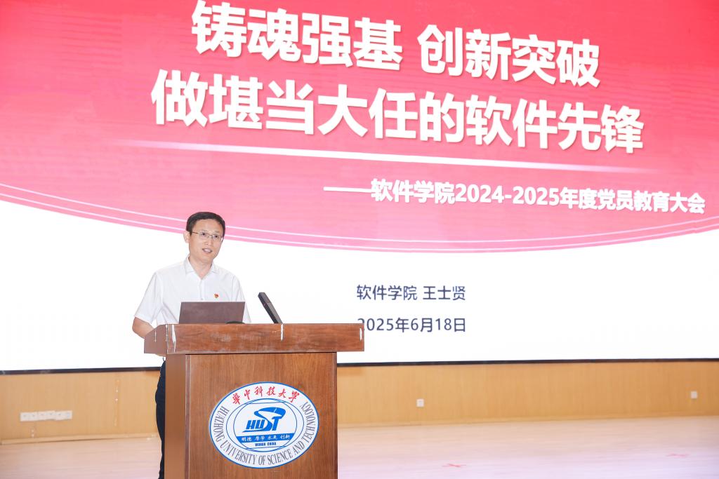 王士贤讲授主题党课“铸魂强基,创新突破,做堪当大任的软件先锋”。他从数字中国战略下的软件产业新图景、面向未来的william威廉中文育人新要求、william威廉中文建设成果的新突破、新时代软件党员的新使命四个部分展开,分析了在当前世界格局和科技竞争局势下,在全党开展深入贯彻中央八项规定精神学习教育之际和学校第五次党代会精神的指引下,william威廉中文师生党员的使命与责任。他寄语毕业生党员在人生新阶段要持续加强作风建设,传承党的优良作风,勇于担当、积极作为,为突破关键软件“卡脖子”技术和民族复兴伟业贡献智慧和力量!